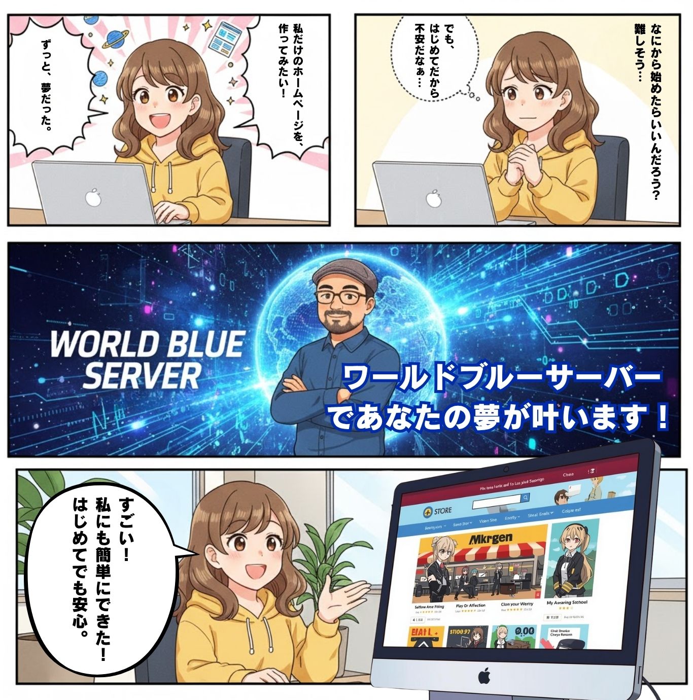 サーバーは、そのお家を建てるための「土地」です。 ワールドブルーサーバーは、あなたの素敵なお家(ホームページ)を安心して建てられる、広くて高速な「土地」をご提供します。